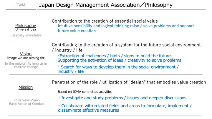 Vision, mission, organization, roadmap of Japan Design Management Association