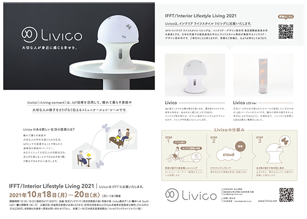 Tokyo Zokei University Graduate School Tamada Laboratory will be exhibiting at IFFT (Interior and Ufu Style Exhibition). The content will be an exhibition of the research results of graduate students, "Livico: Living Connect." This is a communication tool that uses IoT technology to casually convey the state of family members and loved ones living apart.